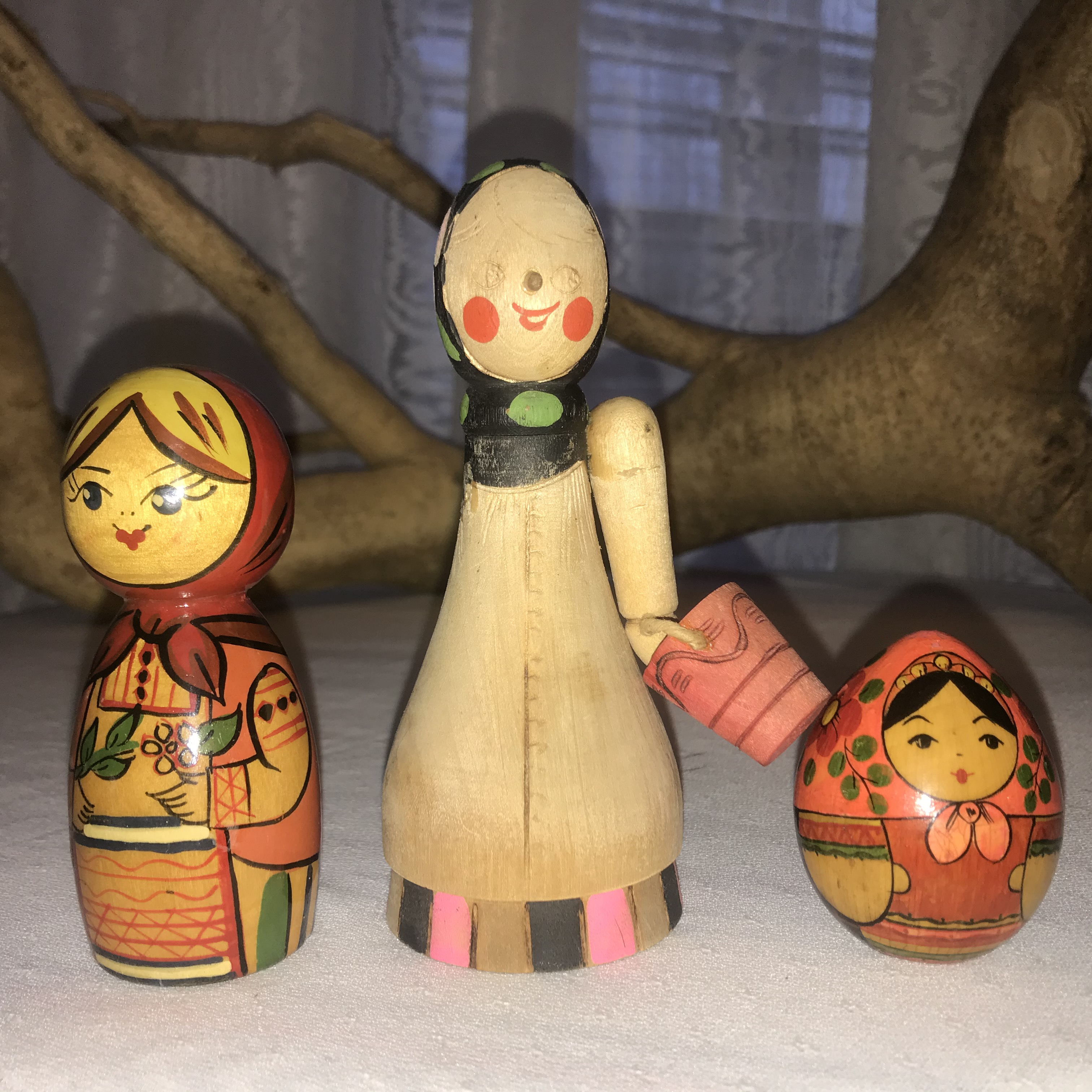 A set of 3 Soviet ancient wooden dolls. Russian toys
