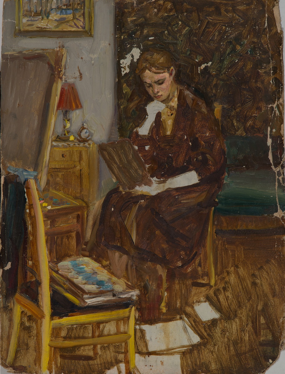 Print copy on canvas. Antique “Portrait of the artist’s girl”