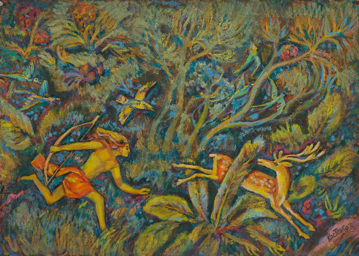 Only print copy on canvas (original sold) “Tarzan” – original ancient signed pastel painting