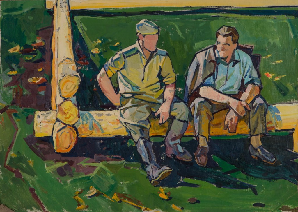 Only print copy on canvas (original sold). “Conversation of two soldiers”