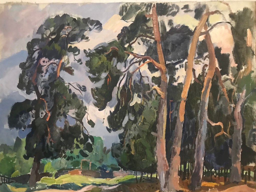 Only print copy on canvas (original sold). Soviet artist A.Kostenko,Taiga,vintage Impressionism Art. USSR collection painting