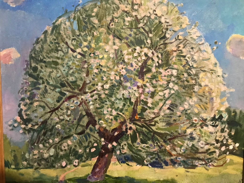 Only print copy on canvas (original sold). Apple trees in bloom,Country landscape.USSR