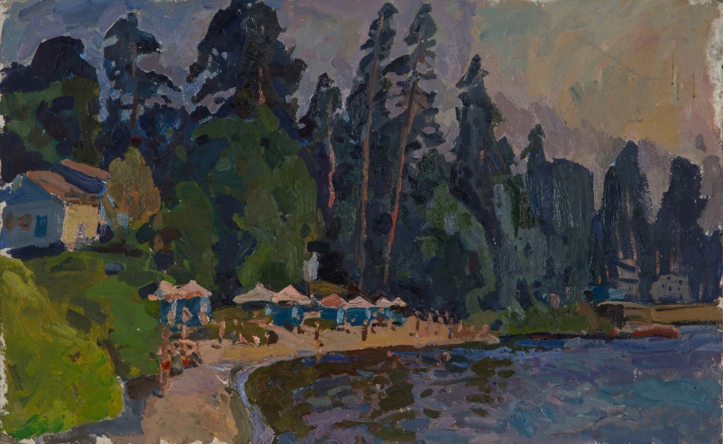 Only print copy on canvas (original sold). Beach on the Dnieper. Impressiоnism