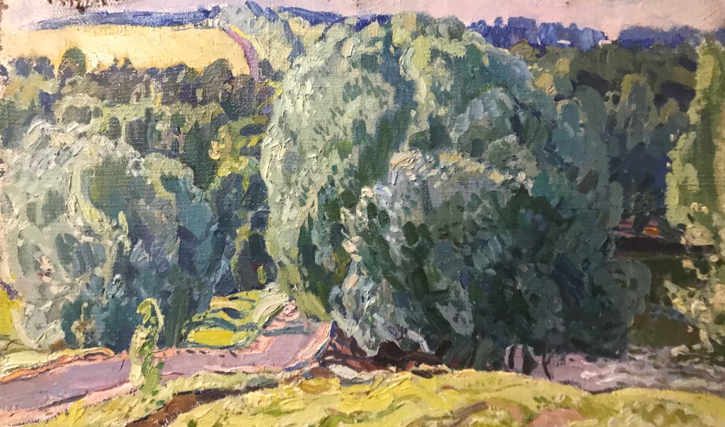 Only print copy on canvas (original sold). Vintage original oil painting on canvas, summer rural landscape Soviet artist A.Kostenko