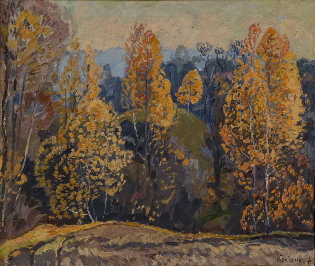 Only print copy on canvas (original sold). Vintage landscape painting, Impressionism. Original signed painting Artist of the USSR A. Kostenko