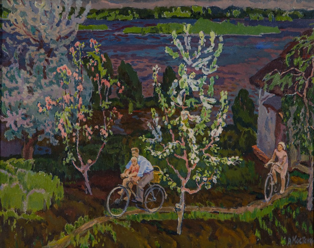 Only print copy on canvas (original sold). SPRING LANDSCAPE Vintage. Oil. Original painting by famous USSR artist A.Kostenko One-on-a-kind work of art, 1975