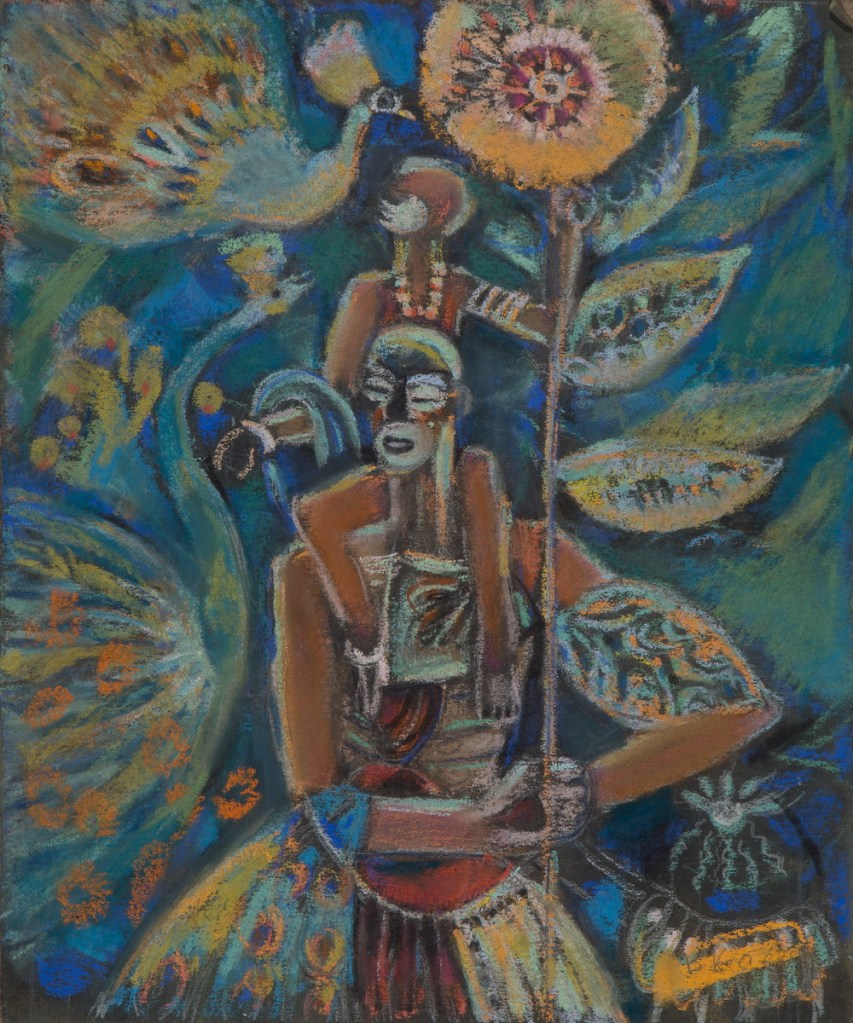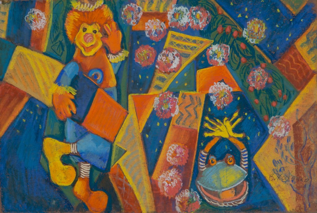 Original ancient pastel painting – a cheerful clown brought gifts. Fairytale decor for children