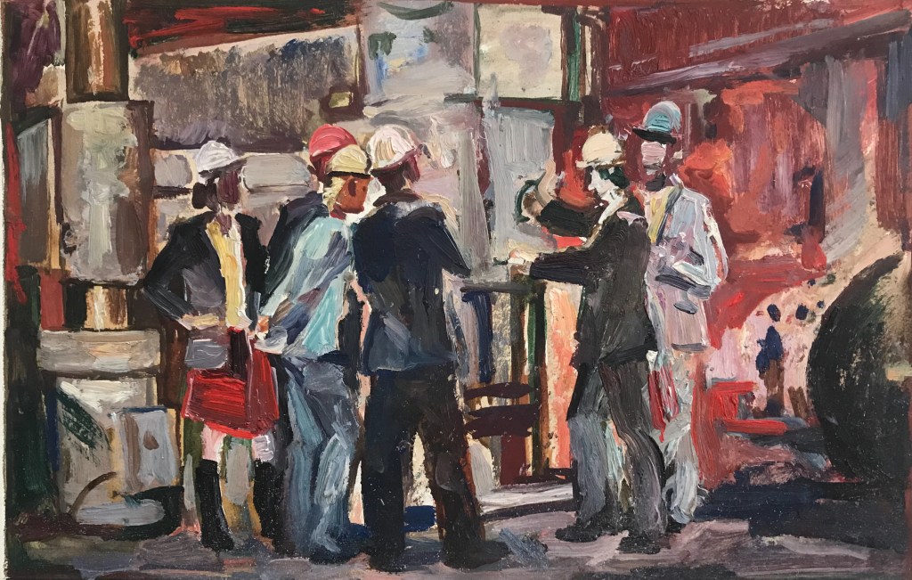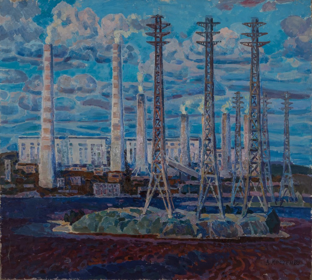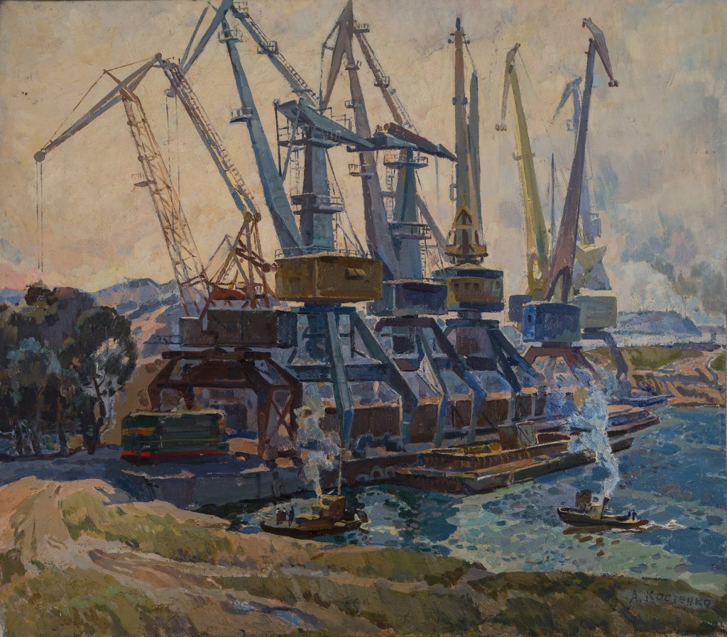 Antique painting. Original Soviet artist V. Kostenko. Industrial painting, mid-century painting, one of a kind. USSR