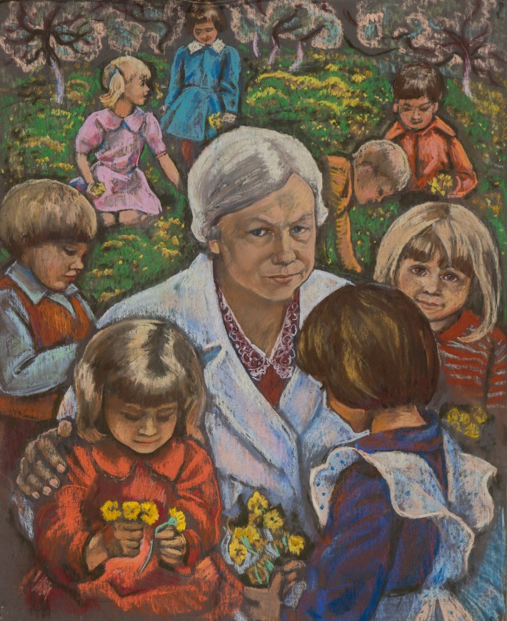 “Favorite teacher”, 80 * 65cm, 1975, Fine Soviet art.