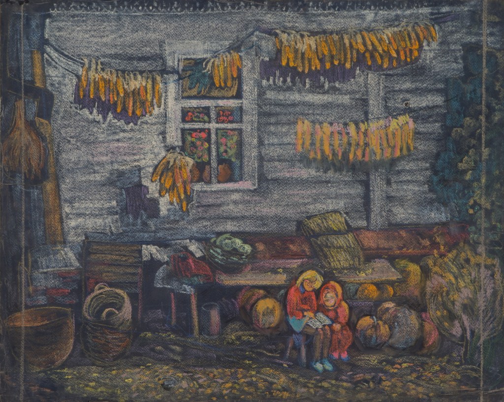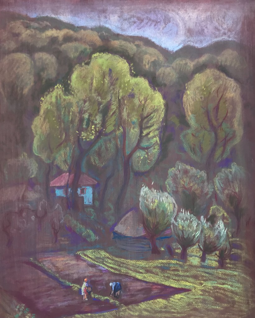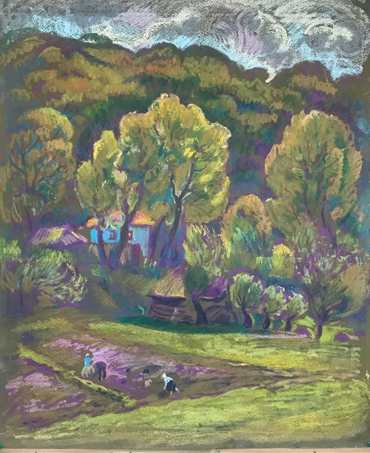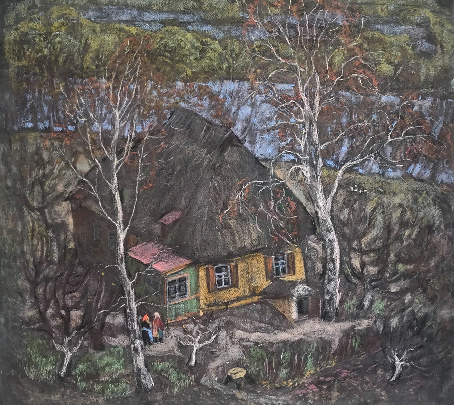 Old Ukrainian Pastel Country Scene Painting by Kostenko V.