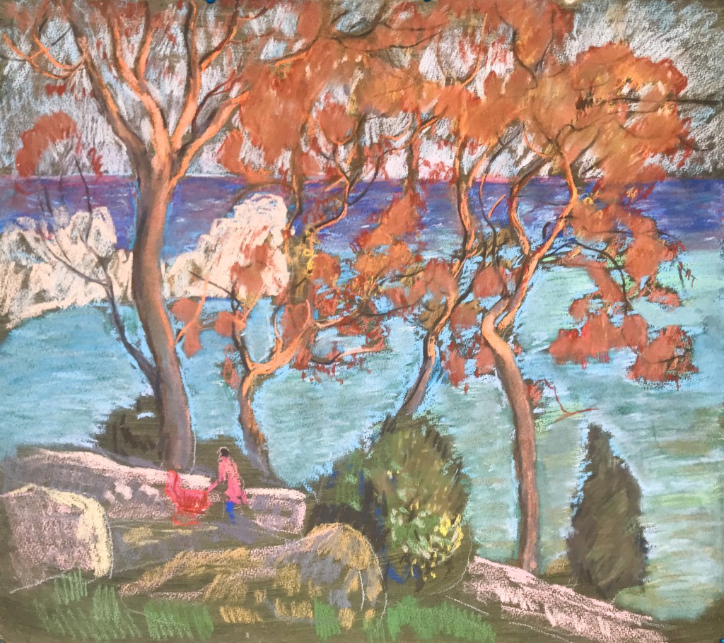 Ancient vintage original pastel painting by artist of the USSR Kostenko V.