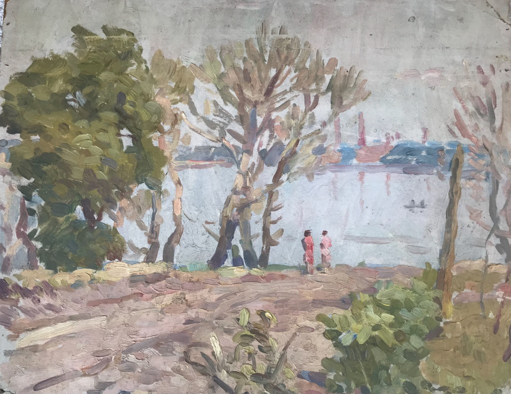 The painting “Khutoryanochka” 1965 Vintage. Canvas.