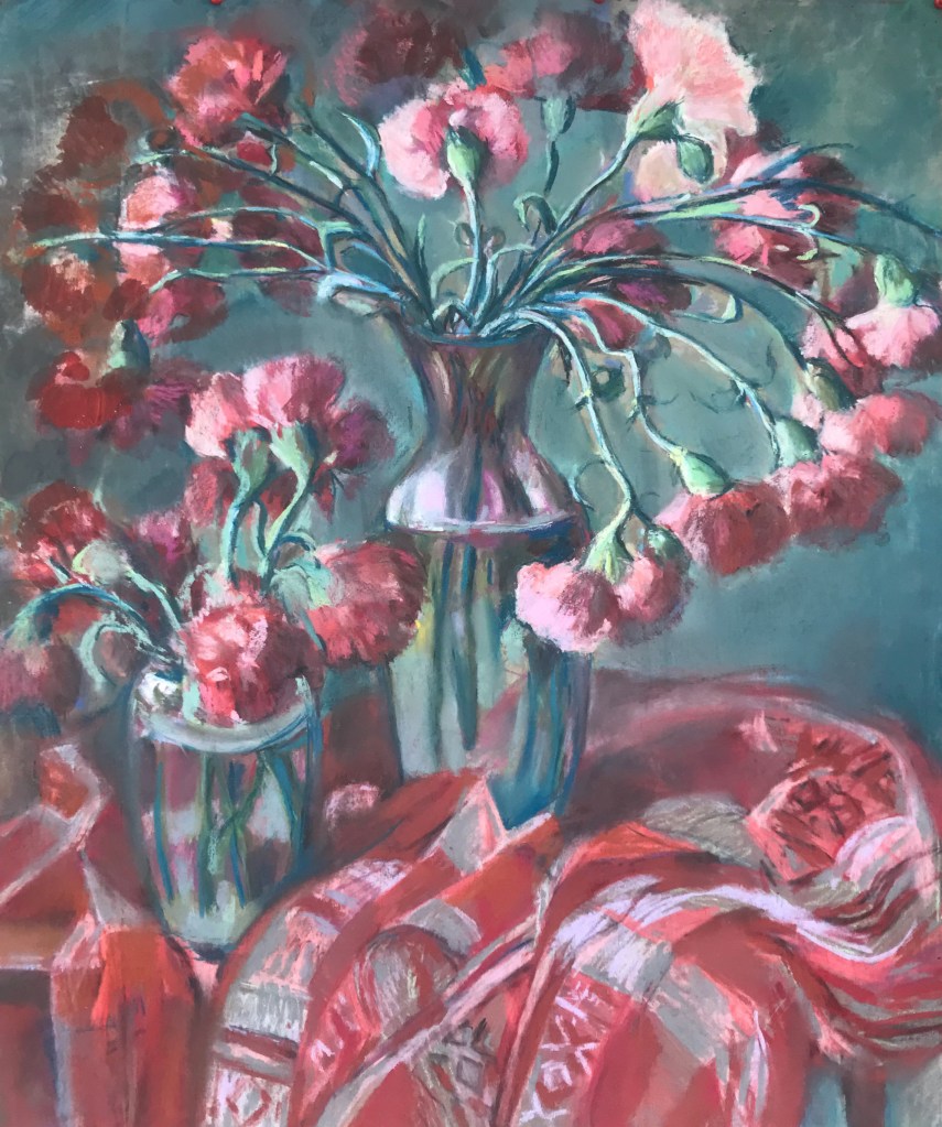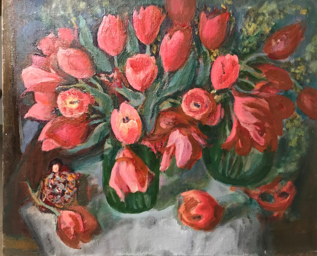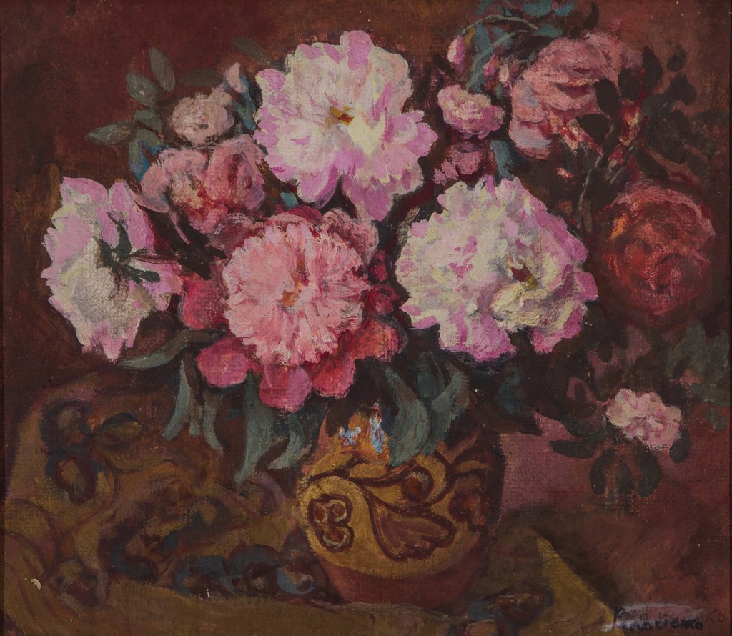 Flowers still life original oil painting by Soviet artist V.N. Kostenko 1998. Flowers painting
