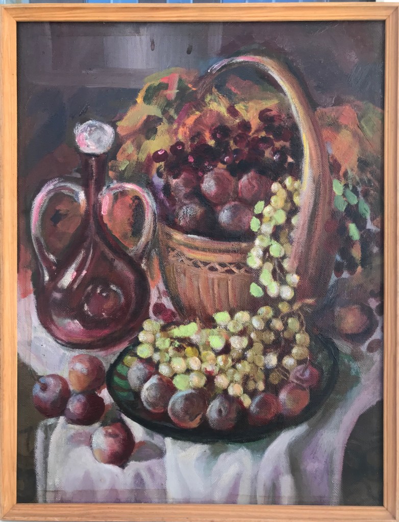 “Tsvety i vinograd” 1978 Kostenko V. Vintage. Canvas. Oil paints. Collection. 71*58 cm, USSR