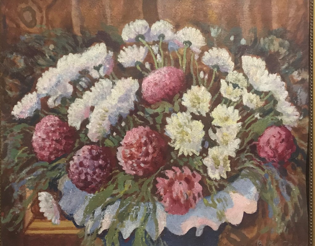 Vintage painting, original floral still life signed USSR artist V.Kostenko, large bouquet of autumn flowers